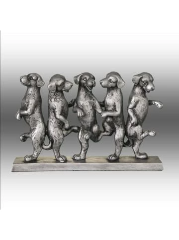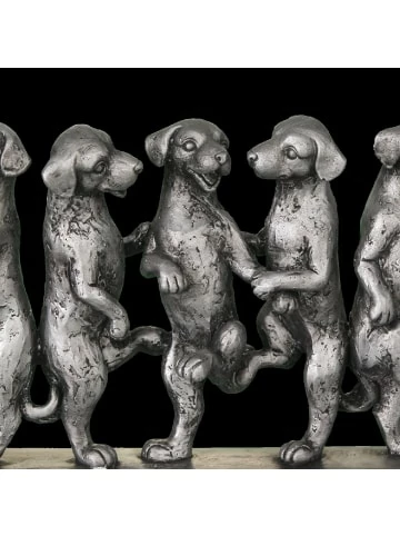 Mit unseren tanzenden Hunden schaffen Sie ein modernes, fröhliches Ambiente in Ihrem Zuhause.Die Figur wirkt, als wäre Sie aus antikem Silber mit einer strukturierten Oberfläche gefertigt. Dies wurde durch einen speziellen Produktionsprozess erzielt, der der Figur diesen authentischen Look verleiht.
