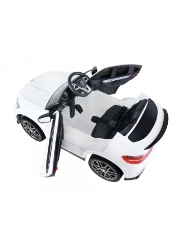 Technische DatenAltersempfehlung: 3 bis 7 JahreGeschwindigkeit: ca. 3-6 Km/hGetriebe: 2 x Vorwärts + 1 x RückwärtsAudiofunktionen: USB, AUX, SD-KarteLenkrad: Lenkrad mit Sound für Musik und HupeLadezeit: 8 – 10 StundenMotor: 4 Motoren 12V 35Watt (Total 140Watt), Allrad zuschaltbarFahrzeugart: AutoTüren: Türen zum ÖffnenAlter: 3-7 JahreProduktgewicht(E): 19,5 KgWeitere Funktionen: Swing-Funktion, Soft-Start, Motorsound beim Starten, TransportrollenSicherheit: Sicherheitsgurt, BremsautomatikBatterie: 12 Volt 7AHLed Beleuchtung: LED Scheinwerfer vorne und LED Rückleuchten hinten, zuschaltbarFederung: Federung hintenProduktmaße (L X B X H): 116.0 x 75.0 x 60.0 cmMax. Zuladung: 35 kgSitz: Sitz für 1 PersonMarke: MercedesReifen: EVA-VollgummireifenBetriebsdauer: Fahrdauer bis zu 1-1,5 StundenFernbedienung: 2,4 Ghz mit First-Funktion