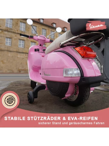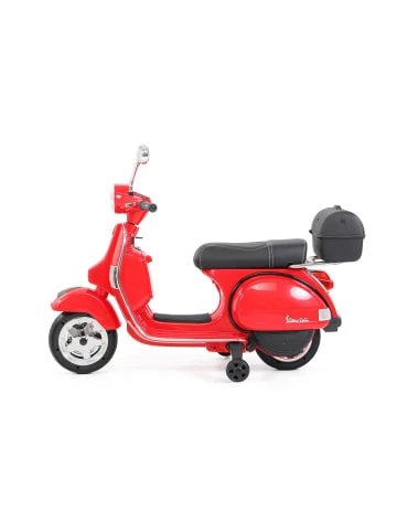 Technische DatenAltersempfehlung: 3 bis 7 JahreZertifikate: CE, EN71, EN62115, ROHSGeschwindigkeit: ca. 3-6 Km/hKartongewicht(E): 12.0 kgGetriebe: 1x Vorwärts + 1x RückwärtsAudiofunktionen: MP3, USB, SD-Karte, AUX, Geschichten auf EnglischKartonmaße (L X B X H): 95.0 x 35.5 x 44.5 cmLadezeit: 8 – 10 StundenMotor: 2 Motoren 12V 18Watt (Total 36Watt)Fahrzeugart: ZweiräderAlter: 3-7 JahreProduktgewicht(E): 9.8 kgWeitere Funktionen: Stützräder, Koffer zum Öffnen, LCD LadeanzeigeSicherheit: BremsautomatikBatterie: 1 x 12 Volt 7AHLed Beleuchtung: LED Scheinwerfer vorne, LED RücklichtProduktmaße (L X B X H): 111.0 x 54.0 x 82.0 cmMax. Zuladung: 35 kgSitz: Ledersitz für 1 PersonLenker: Lenker mit Soundmodul für Hupe und MusikMarke: VespaReifen: EVA-VollgummireifenBetriebsdauer: Fahrdauer bis zu 1-1,5 Stunden